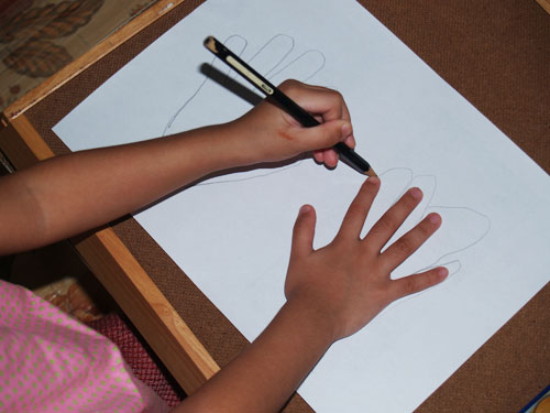 Ada rupa ayam turkey ke? :) Aktiviti untuk mengajar dhiacoco guna gunting dan recycle yarn leftovers.